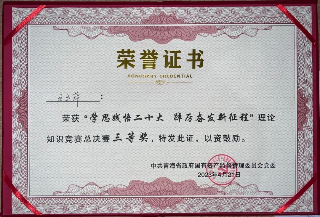 省三江集團(tuán)王玉萍同志在省國資委黨委舉辦的理論知識競賽總決賽中獲獎